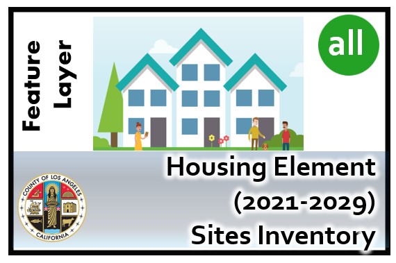 Description: IntroductionThis metadata is broken up into different sections that provide both a high-level summary of the Housing Element and more detailed information about the data itself with links to other resources. The following is an excerpt from the Executive Summary from the Housing Element 2021 – 2029 document:The County of Los Angeles is required to ensure the availability of residential sites, at adequate densities and appropriate development standards, in the unincorporated Los Angeles County to accommodate its share of the regional housing need--also known as the Regional Housing Needs Allocation (RHNA). Unincorporated Los Angeles County has been assigned a RHNA of 90,052 units for the 2021-2029 Housing Element planning period, which is subdivided by level of affordability as follows:Extremely Low / Very Low (<50% AMI) - 25,648Lower (50 - 80% AMI) - 13,691Moderate (80 - 120% AMI) - 14,180Above Moderate (>120% AMI) - 36,533Total - 90,052NOTES - Pursuant to State law, the projected need of extremely low income households can be estimated at 50% of the very low income RHNA. Therefore, the County’s projected extremely low income can be estimated at 12,824 units. However, for the purpose of identifying adequate sites for RHNA, no separate accounting of sites for extremely low income households is required. AMI = Area Median IncomeDescriptionThe Sites Inventory (Appendix A) is comprised of vacant and underutilized sites within unincorporated Los Angeles County that are zoned at appropriate densities and development standards to facilitate housing development. The Sites Inventory was developed specifically for the County of Los Angeles, and has built-in features that filter sites based on specific criteria, including access to transit, protection from environmental hazards, and other criteria unique to unincorporated Los Angeles County. Other strategies used within the Sites Inventory analysis to accommodate the County’s assigned RHNA of 90,052 units include projected growth of ADUs, specific plan capacity, selected entitled projects, and capacity or planned development on County-owned sites within cities. This accounts for approximately 38 percent of the RHNA. The remaining 62 percent of the RHNA is accommodated by sites to be rezoned to accommodate higher density housing development (Appendix B).Caveats:This data is a snapshot in time, generally from the year 2021. It contains information about parcels, zoning and land use policy that may be outdated. The Department of Regional Planning will be keeping an internal tally of sites that get developed or rezoned to meet our RHNA goals, and we may, in the future, develop some public facing web applications or dashboards to show the progress. There may even be periodic updates to this GIS dataset as well, throughout this 8-year planning cycle.Update History:5/31/22– Los Angeles County Board of Supervisors adopted the Housing Element on 5/17/22, and it received final certification from the State of California Department of Housing and Community Development (HCD) on 5/27/22. Data layer published on 5/31/22.Links to other resources:Department of Regional Planning Housing Page - Contains Housing Element and it's AppendicesHousing Element Update - Rezoning Program Story Map (English, and Spanish)Southern California Association of Governments (SCAG) - Regional Housing Needs AssessmentCalifornia Department of Housing and Community Development Housing Element pageField Descriptions:OBJECTID - Internal GIS IDAIN - Assessor Identification Number*ASI Status - Sites Inventory Status (Nonvacant or Vacant)SitusAddress- Site Address (Street and Number) from Assessor Data*SitusCity - Site Address (City) from Assessor Data*SitusZIP - Site Address (ZIP) from Assessor Data*LV_IV_Ratio - Land Value to Improvement Value Ratio from Assessor Data*YearBuiltMax- Maximum Year Built from Assessor Data*Use Code - Existing Land Use Code (corresponds to Use Type and Use Description) from Assessor Data*Use Type - Existing Land Use Type from Assessor Data*Use Description - Existing Land Use Description from Assessor Data*Publicly Owned - If publicly owned, indicates whether it's Federal, State, County, or Special DistrictUnits Total - Total Existing Units from Assessor Data*Supervisorial District (2021) - LA County Board of Supervisor DistrictSubmarket Area - Inclusionary Housing Submarket AreaPlanning Area - Planning Areas from the LA County Department of Regional Planning General Plan 2035Community Name - Unincorporated Community NamePlan Name - Land Use Plan Name from the LA County Department of Regional Planning (General Plan and Area / Community Plans)Zoning - 1 - Zoning from Dept. of Regional Planning - Primary Zone (in cases where there are more than one zone category present)*Zoning - 1 (% area) - Zoning from Dept. of Regional Planning - Primary Zone (% of parcel covered in cases where there are more than one zone category present)*Zoning - 2 - Zoning from Dept. of Regional Planning - Secondary Zone (in cases where there are more than one zone category present)*Zoning - 2 (% area)- Zoning from Dept. of Regional Planning - Secondary Zone (% of parcel covered in cases where there are more than one zone category present)*Zoning - 3 - Zoning from Dept. of Regional Planning - Tertiary Zone (in cases where there are more than one zone category present)*Zoning - 3 (% area) - Zoning from Dept. of Regional Planning - Tertiary Zone (% of parcel covered in cases where there are more than one zone category present)*LUP - 1 - Land Use Policy from Dept. of Regional Planning - Primary Land Use Policy (in cases where there are more than one Land Use Policy category present)*LUP - 1 (% area) - Land Use Policy from Dept. of Regional Planning - Primary Land Use Policy (% of parcel covered in cases where there are more than one Land Use Policy category present)*LUP - 2 - Land Use Policy from Dept. of Regional Planning - Secondary Land Use Policy (in cases where there ar